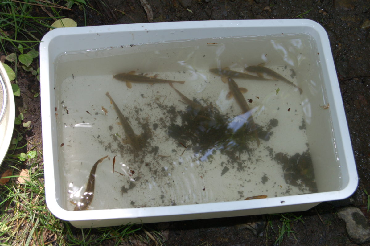 G)フクドジョウ、ヤマメ、カワニナ、ヒラタカゲロウ たちが生息